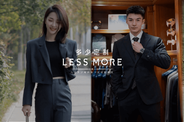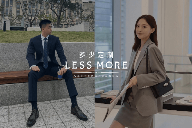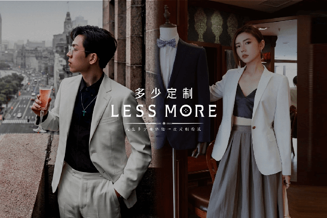 LESS MORE多少定制 2015年5月創立于北京,以互聯網思維和工業4.0切入服裝定制領域,獨創“互聯網預約+旗艦店體驗+免費上門量體+工業4.0 C2M生產”的模式,現已成為國內服裝定制行業的標桿品牌。